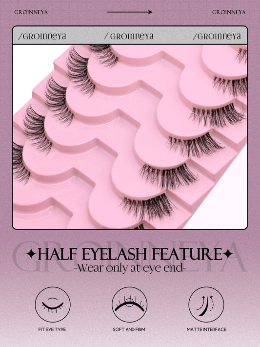 GROINNEYA Half Lashes – Natural Faux Mink Wispy Eyelash Extensions with Clear Band